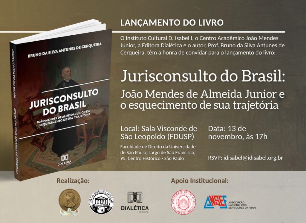 ANTUNES DE CERQUEIRA, Bruno da Silva. Jurisconsulto do Brasil. João Mendes de Almeida Junior e o esquecimento de sua trajetória. São Paulo: Dialética, 2025. 228 páginas.